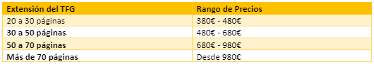 Ahora vamos a detallarte, en todo lo que podamos los precios aproximados para que puedas hacerte una idea de cuanto cuesta comprar un TFG: